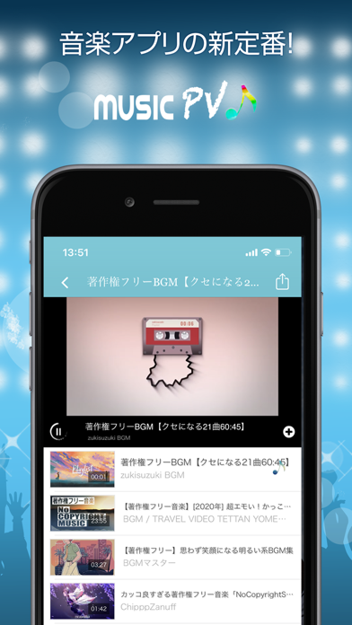 好きなときに音楽がで聴けるアプリが登場! 好きなジャンルから曲を選択することが出来、自分だけのプレイリストも作成可能。 通勤時間に視聴したり、連続再生を使って自宅用BGMとして楽しめたりします。 さらに、気に入った楽曲は、シェア機能を使って友達にも簡単に共有出来ちゃいます! 【主な機能】 ・連続再生機能が付いているので、作業中再生しっぱなしで最新の動画が手放しで次々とチェックできる.. Read more