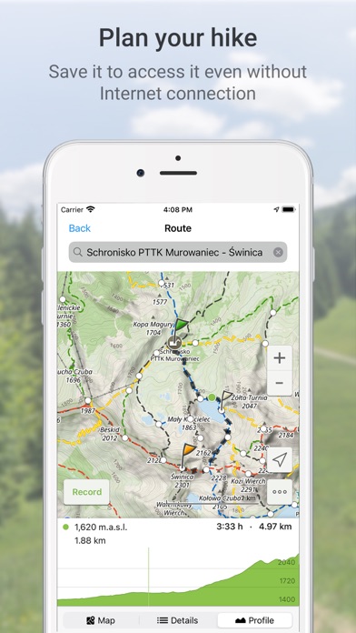 Route planning The main functionality is planning routes leading along official hiking trails in the mountains and foothills of Poland. The app finds a route quick and easy, displays it on a map, show.. Read more