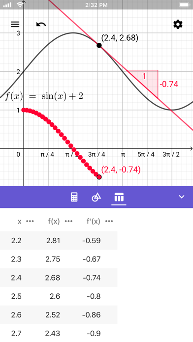Graph functions, roots, and extrema. Find derivatives and integrals. Create tables of values. Solve equations and 3D math problems. Construct and analyze polygons, circles and conics. Create dynamic g.. Read more