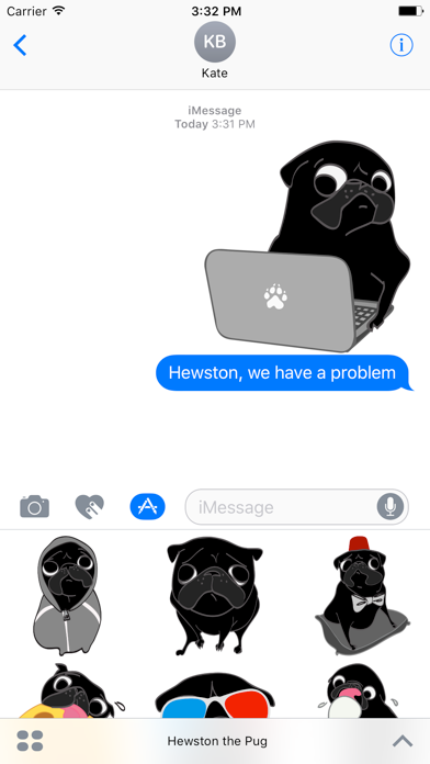 "Hewston, we have a problem: Who ate all the cheese?" Where to find Hewston after installing the sticker pack... Open up a message and tap the ">" button Then tap the App button (it looks like an A.. Read more