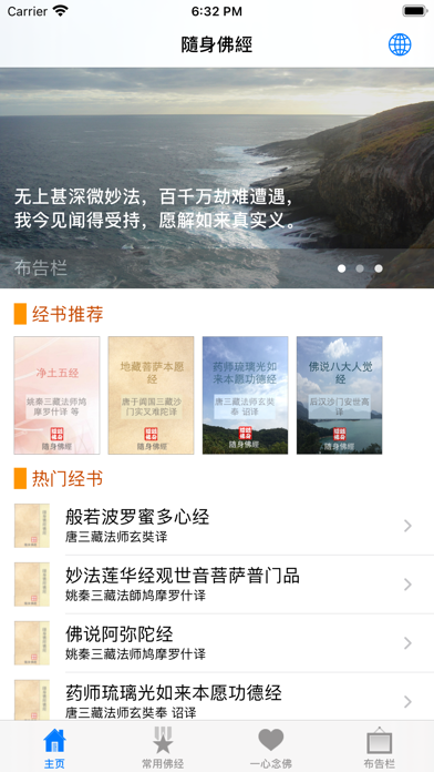 隨身佛經为您提共一系列普遍世界各地佛教徒所常用的佛经。 支持简体和繁体字。 - 大悲咒 - 佛说阿弥陀经 - 佛说无量寿经 - 大佛顶首楞严经 - 佛说四十二章经 - 佛说观无量寿经 - 地藏菩萨本愿经 - 佛说八大人觉经 - 文殊师利发愿经 - 般若波罗蜜多心经 - 佛说父母恩难报经 - 大势至菩萨念佛圆通章 - 药师琉璃光如来本愿功德经 - 大方广佛华严经·普贤行愿品 - 妙法莲华经观世音.. Read more