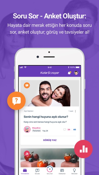 KizlarSoruyor’da hem kızlar soruyor hem erkekler soruyor. Her gün binlerce sorunun sorulduğu ve cevaplandığı uygulamamızda dilediğin soruyu özgürce sor! Aklına gelebilecek tüm konularda görüş paylaş.. Read more