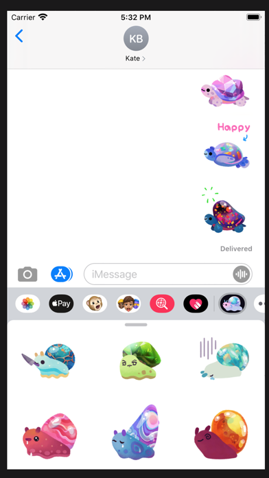 Cute animal sea turtle, tortoise, hermit crab, snail, sea slug with Jewel shells. 24 animated sticker pack. Gemstone (Black Opal, white opal, Garnet, snowflake Obsidian, Diamond, Agate, Emerald, Ja.. Read more