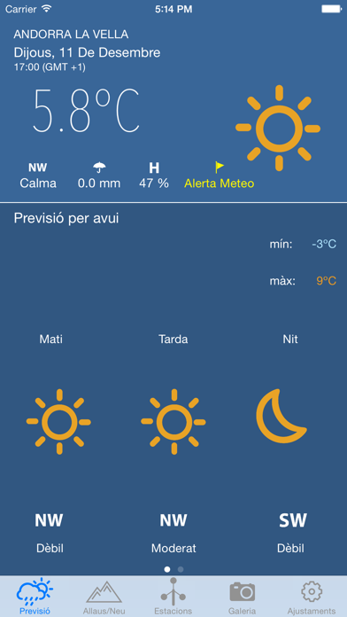Aquesta aplicació del Servei meteorològic d’Andorra et serà de gran ajuda per saber la predicció del temps a 4 dies vista, el perill d’allaus i l’estat de la neu durant la temporada d’hivern, així com.. Read more