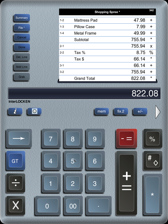 'Adding Machine 10Key iPad Lite' behaves like a true '10 Key' or 'printing calculator' such as those made by Monroe, Casio, Sharp and others. A total is obtained by pressing the asterisk (*), operator.. Read more