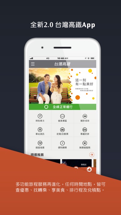 「台灣高鐵」App - 為台灣高鐵公司推出全功能旅程服務,我們不斷持續進化功能,不論您身在何處,隨時可以查優惠、找轉乘、享美食、排行程、兌積點及管票卡。 給旅客全新及多元服務,輕鬆規劃說走就走,也可隨時分享旅程,就讓我們一起體驗「台灣高鐵 」App 吧! 功能特色: 1. 查優惠-時刻車次結合適用優惠,容易掌握高鐵車次優惠。 2. 找轉乘-結合PTX交通部即時動態資訊,隨時掌握快捷公車、市區.. Read more