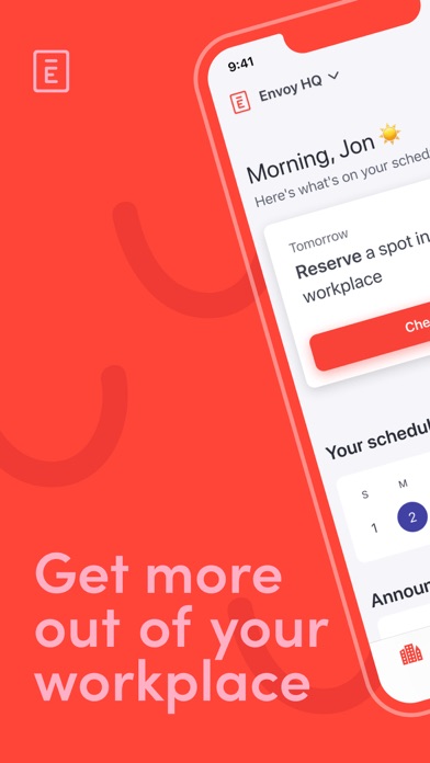 Get more out of your workplace with Envoy. Set your schedule for the week, reserve a desk, manage your upcoming visitors, book nearby conference rooms, get notified about incoming packages, and more... Read more