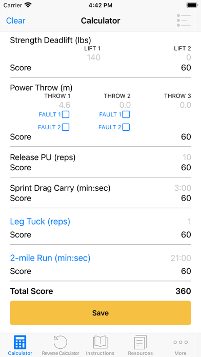 ACFT Calculator allows you to input your scores with a slider bar, increment/decrement buttons, or by typing in your raw values to calculate your event and overall score. The app will also let you kn.. Read more