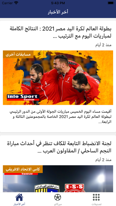 هنا تطبيق أنفوسبور الجديد تتابعون من خلاله لحظة بلحظة أبرز الأخبار الرياضية الوطنية منها والعالمية : - تغطية لنشاط البطولات الوطنية في كل الرياضات الجماعية. - تغطية لمشاركات الأندية التونسية في المسا.. Read more