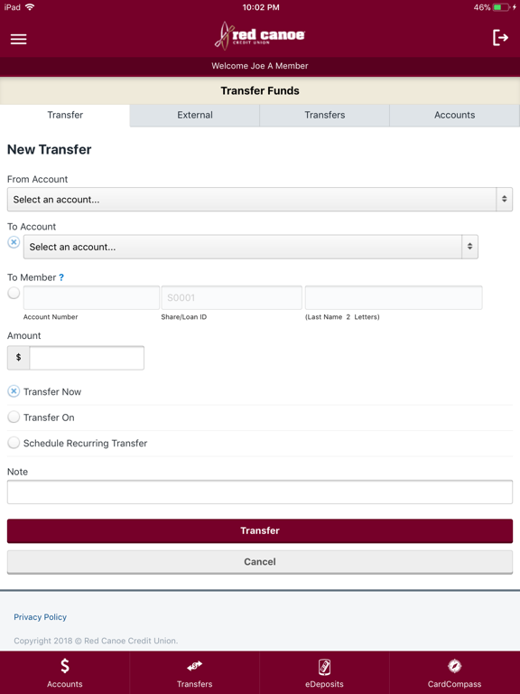 Red Canoe is bringing you Mobile Banking to your iPhone / iPod. You will have easy access to your accounts in Online Banking with this app. Benefits include: Balances - view account balances and transaction history. Transfers - transfer between your accounts or to another member. Bill Payer - pay bills and view recent payments. Mobile Deposit - use your phone to take a photo of a check and deposit it directly to your qualified account. Locations - get directions to Red Canoe branches, shared branch locations and ATMs. Mobile Banking is FREE and SECURE. Security includes the latest in SSL encryption and is backed by Online Banking secure sign-on.