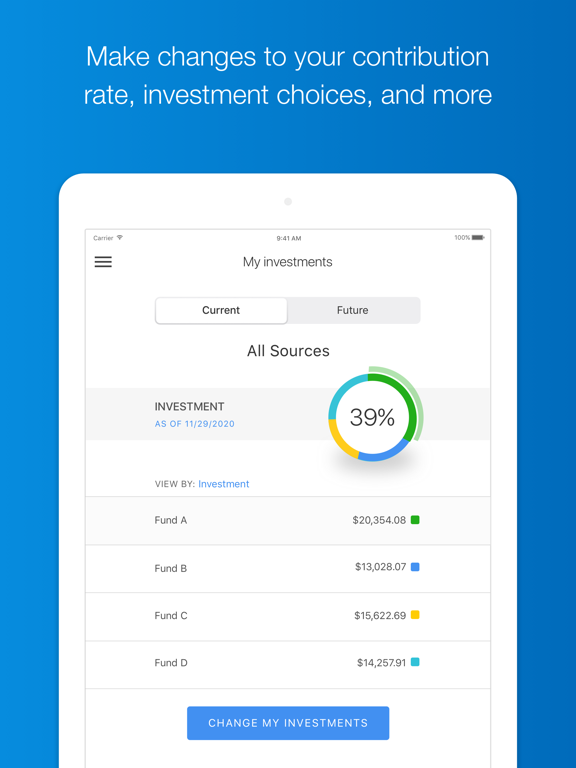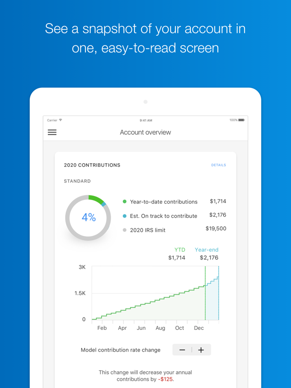 • View account balances, rate of return, transaction history, statements, and plan investment lineup detail.