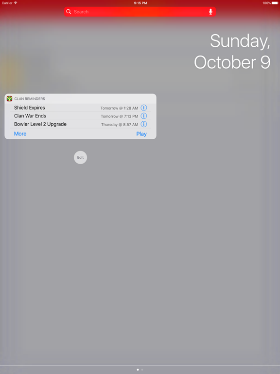 Clan Reminders for Clash of Clans can be displayed in the iOS Today Screen and notifications are also sent to your Apple Watch.