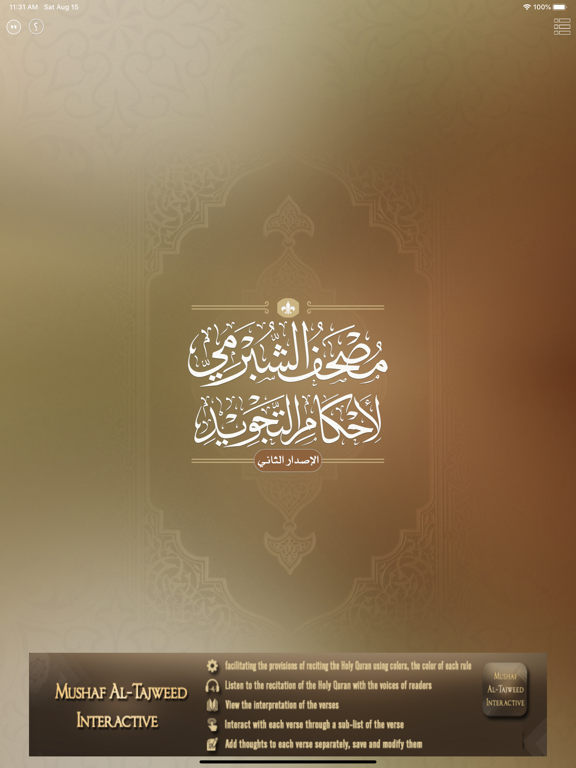 -	أصبح بإمكانك الآن قراءة القرآن الكريم بكل سهولة ويسر، حيث يعرض لك التطبيق أمثلة عملية من المصحف لأحكام التجويد بالألوان.