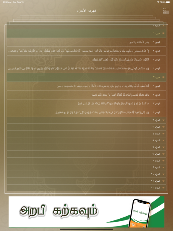-	استعراض المصحف من خلال الأجزاء والأحزاب والأرباع