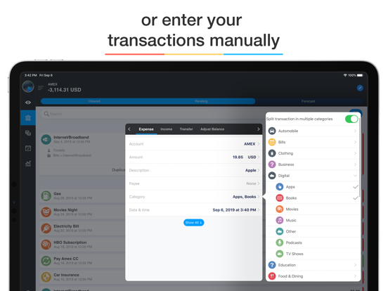 Manage everything about your money from a single app. Sync with banks or manage accounts manually. Available for all major platforms and syncs between all of your devices automatically.