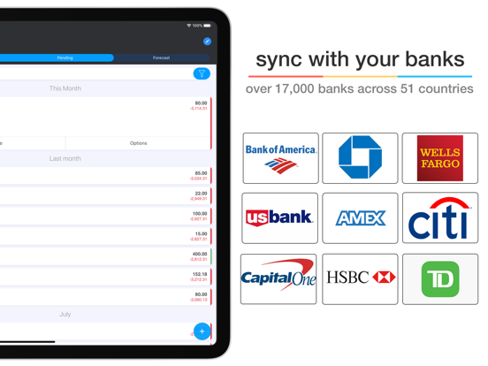 • worldwide online banking support with automatic transaction categorization and access to over 18,000 banks in over 70 countries,