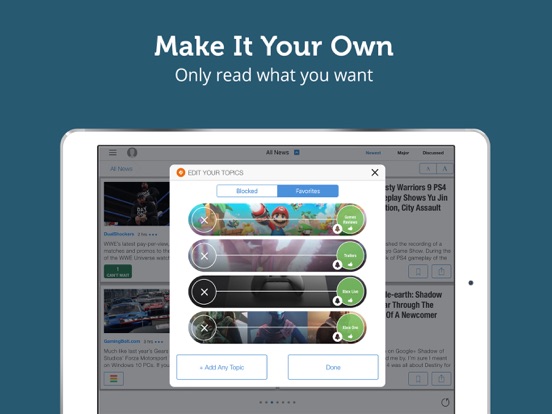 - Your very own news feed - choose the topics you want to follow, the topics you want blocked, and the Xbox topics you want to get notifications about! Don't bother yourself with news that don't interest you!