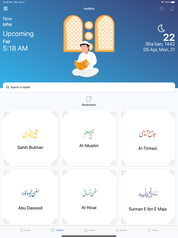 - Bookmark Ahadith to record your reading position or important Ahadith.
