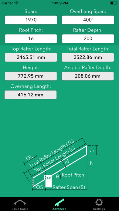 Rafter Help is the easiest way to calculate rafter length and associated values when building!