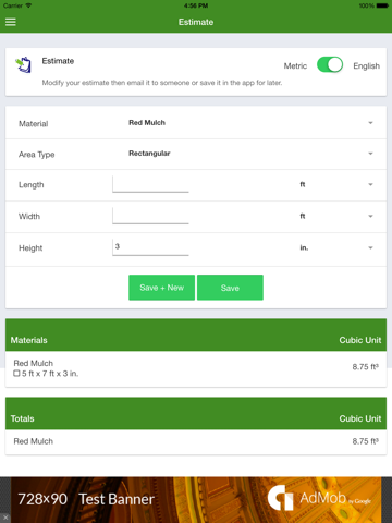 All you have to do is go around your yard entering the measurements and the app keeps a record of exactly how much material you'll need and more while enabling you to email the results to yourself or someone else that may be picking up the material for you. It's the perfect app for your own personal use or landscaping business!