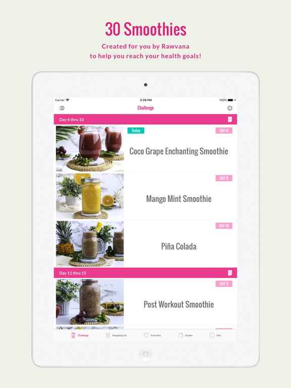 Know exactly what to buy at the grocery store. Add individual smoothie recipes or add them in 5-day bunches. Got some other items you need to shop for? Add your own custom ingredients as well. Check off ingredients as you shop. Integrated with Apple Watch, so you can also glance over at your wrist to see the shopping list.