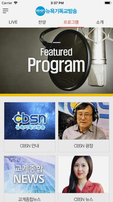 인터넷 라디오 방송인 뉴욕기독교방송(Christian Broadcasting System of New York)은 목사님들의 주옥같은 말씀을 들을 수 있는 설교방송을 포함해 메마르고 척박한 영혼을 위한 은혜로운 찬양과 찬양토크 프로그램, 한국뉴스와 지역 소식, 교계뉴스, 날씨 등을 전하는 CBSN 광장, 교계 주요 인물과의 인터뷰 문석진 목사가 만난 사람, 전문사역자들의 방송컬럼 등 다양하고 생동감 넘치는 프로그램으로 진행합니다. * APP 에서 이용하는 서비스는 모두 무료로 제공됩니다.