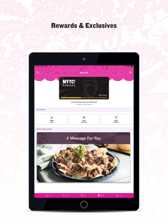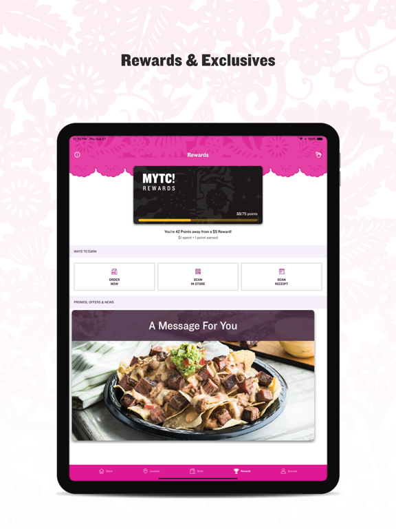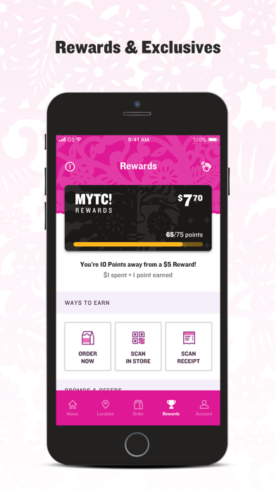 Download the Taco Cabana app to get more out of your Taco Cabana experience. Earn points for every $1 spent. Every 75 points gets you a $5 reward.