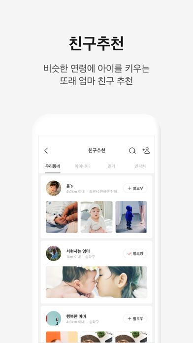 #친구추천, 나와 비슷한 또래 육아맘 친구들을 만나보기
