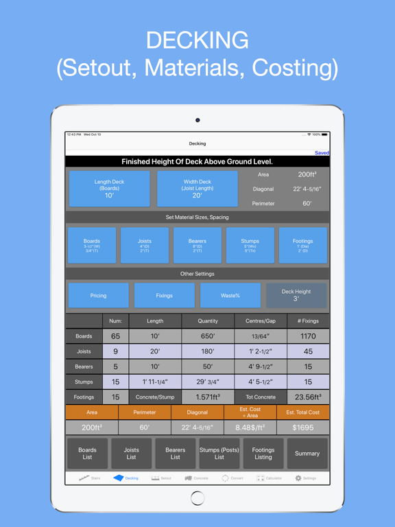 It is designed to save you the time and effort required for these building calculations - but it is not intended to teach you how to build stairs or decking - you already know how.
