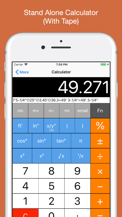 ◆Calculate (add, subtract etc) directly in feet / inches / fractions or decimals.