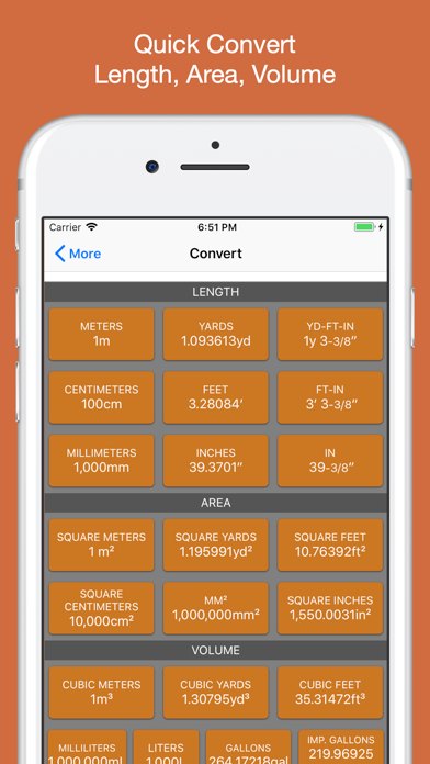 ◆ Convert Lengths, Area, Volume: Metric and US/Imperial.