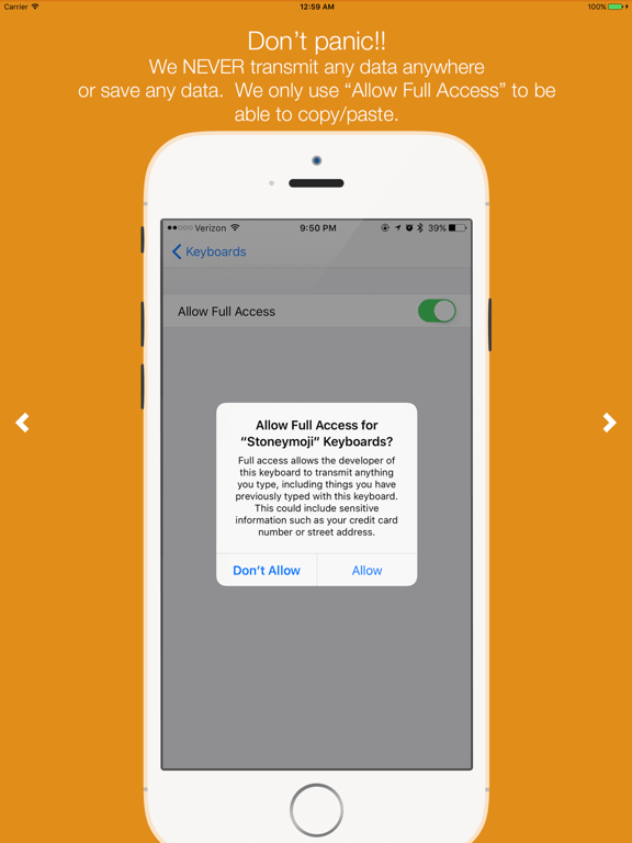 We take security seriously, and while this application requires the "Allow Full Access" keyboard setting to be enabled to function properly, we do NOT ever save or transmit any of your data.