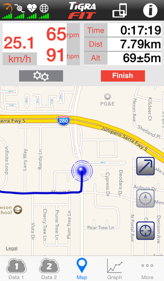 TigraFit uses your iPhone built-in GPS to track your route, and also your speed and distance if you are not using a speed sensor. You can see where you are, where you have been and where you are heading.