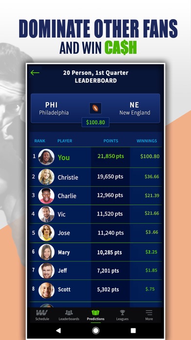 WinView brings in-game predictions, also known as props, straight to your phone while you watch live sports. You can play for cash or for fun and get paid in minutes after each quarter-long contest. Just answer 15-20 props during the live broadcast and beat other fans to win REAL MONEY prizes. Best of all? It’s 100% legal.