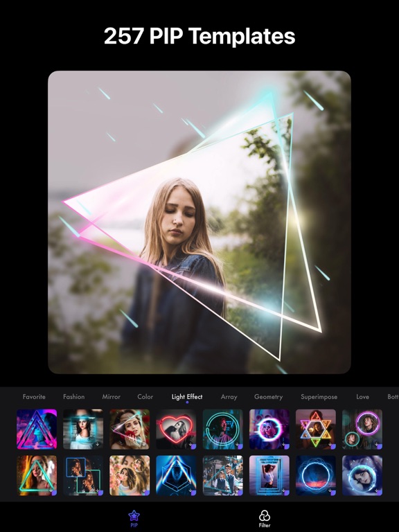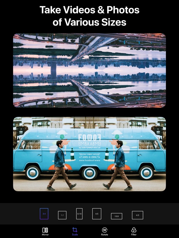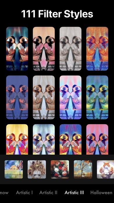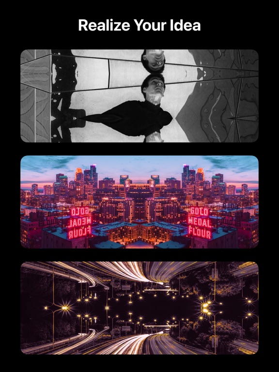 Photo Mirror enables you to quickly and easily add customizable reflections on your photos and videos. There're many mirror patterns and artist filters to choose.