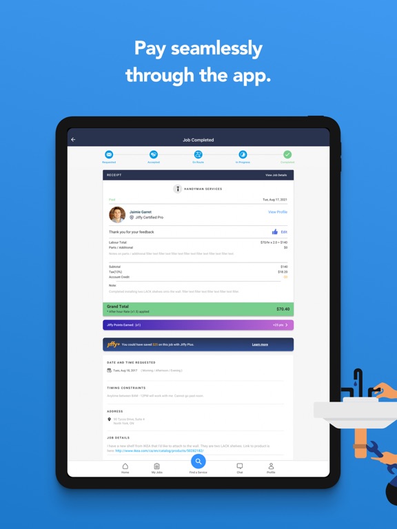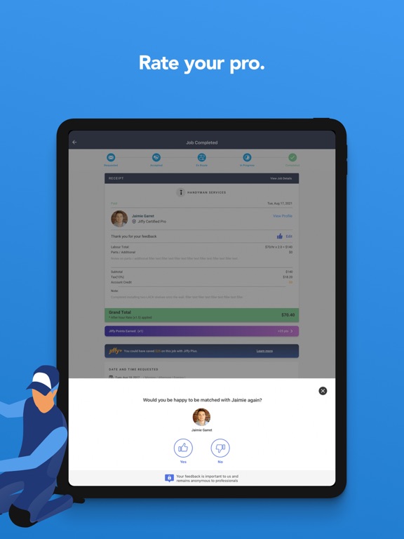 - Rate your pro and get your receipt by email