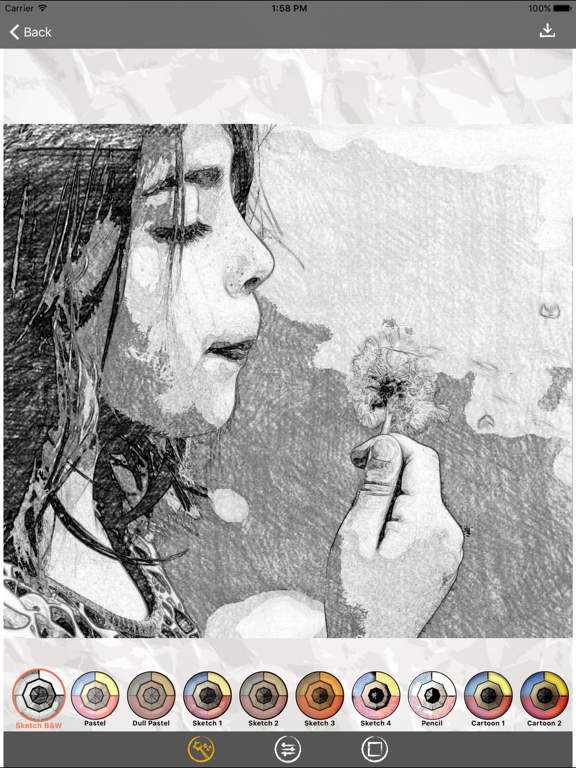 Turn your photos into drawing, cartoons or sketch images in one click to create instant works of art.