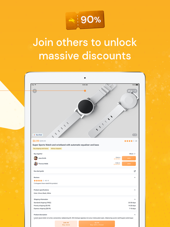 • Social Duo Deals allow you to cash-in on buying with your friends