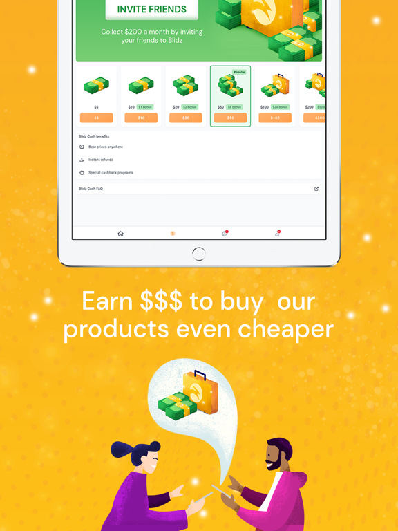 But there is more: by being active in the app, you can earn free Blidz Cash to buy our products even cheaper. Especially, active users get points and cash drops that can be exchanged for real-world products. What are you still waiting for?