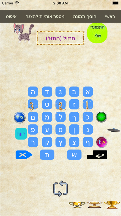 כתיבה נכונה של מילה במשחק מזכה בגביע.המטרה לילדים בכל פעם היא להגיע לשלושה גביעים.