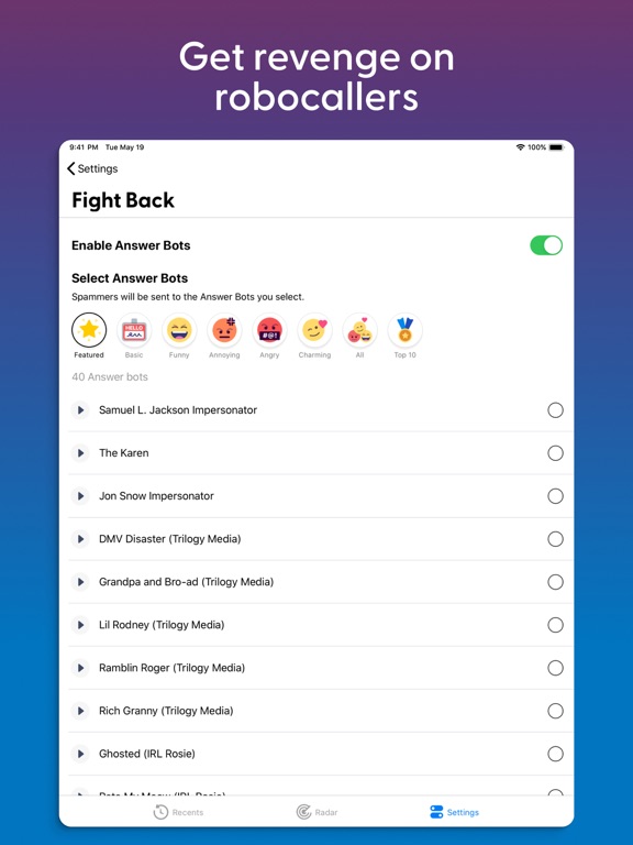 • Get the last laugh on robocallers and scammers with RoboKiller’s Answer Bots! You may even WANT to get spam calls