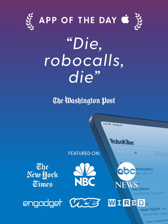 With over 11 Million downloads in the United States, RoboKiller is a trusted source of powerful spam call and text protection. But, don’t take our word for it. RoboKiller has been featured on The New York Times, NBC Nightly News, Good Morning America, Fox News, and many other publications. RoboKiller has also been featured by Apple as a 2019 App of The Day, and won the 2020 Webby Award for Technical Achievement!