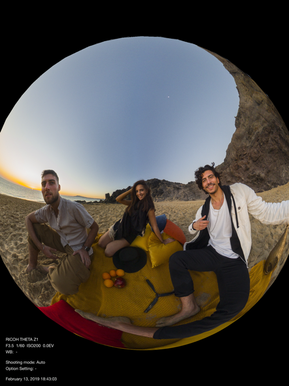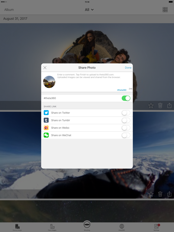 You can share on Twitter, Facebook, and other social network services the spherical images you shoot.