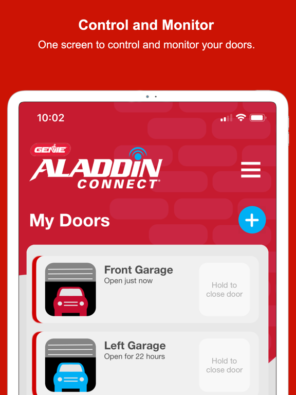Aladdin Connect® allows you to monitor and control your garage door from anywhere. The Aladdin Connect® app works with any Genie Wi-Fi-enabled garage door opener or retrofit kit and can be set up in minutes. The app controls up to 20 garage door openers or retrofit kits and allows you to do the following: