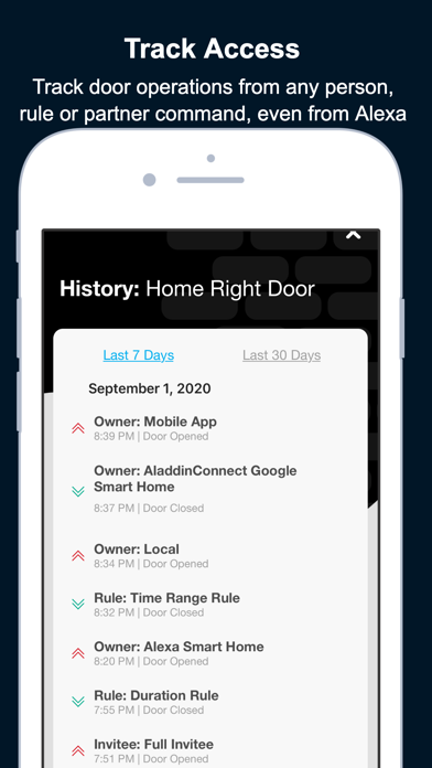 • Add up to 20 family or guest users and get notified when they operate the door