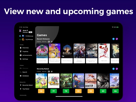 Discover games, watch trailers, PlayStation trophies, Xbox Achievements, Steam games, rate games, create a Game of the Year timeline and so much more.