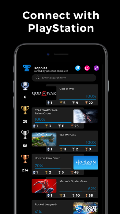 • Link and view your PlayStation Trophies, games and compare with friends.