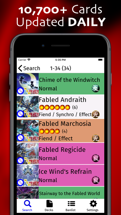 • Over 10,700 Yugioh cards, with more added daily as they are released
