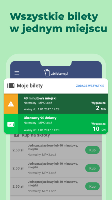 zBiletem to najprostsza i najwygodniejsza aplikacja do kupowania biletów. Kupuj bilety bez stania w kolejce, szukania otwartego kiosku lub sklepu i bez odliczania gotówki. W aplikacji zBiletem wystarczą 3 kliknięcia aby kupić bilet, którego potrzebujesz.