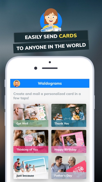 We call them Waldograms — beautiful, personalized postcards that you can create and send within a few simple taps! Pick a photo, personalize your message AND stamp (super fun), write an address, and you’re good to go — Waldo prints and mails it for you. Every Waldo is printed on ultra high quality 5x7, 120# UV-coated gloss covers and enjoys USPS first class delivery, with postage on the house.